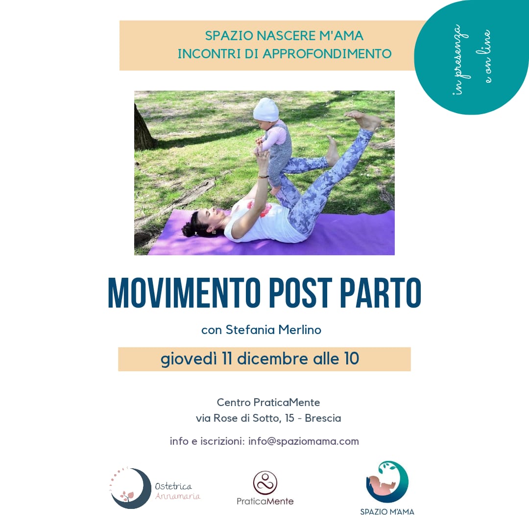 11 Dicembre @ 10:00 - 12:00 Movimento Post Parto – con Stefania Merlino Centre Praticamente Via Rose di Sotto, 15, Brescia, Italia Iscriviti QUI